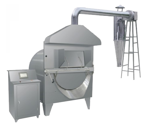 本機采用PLC+觸摸屏控制,數控化生產,可設定及存貯溫度、轉速、時間等工藝參數。采用特殊滾輪支撐裝置支撐炒藥滾筒,滾筒轉動平穩,電磁直接加熱滾筒,升溫迅速。滾筒外加保溫層,測溫探頭可直接測量滾筒溫度。本機具有加熱速度快.熱效率高之優點,符合GMP要求。